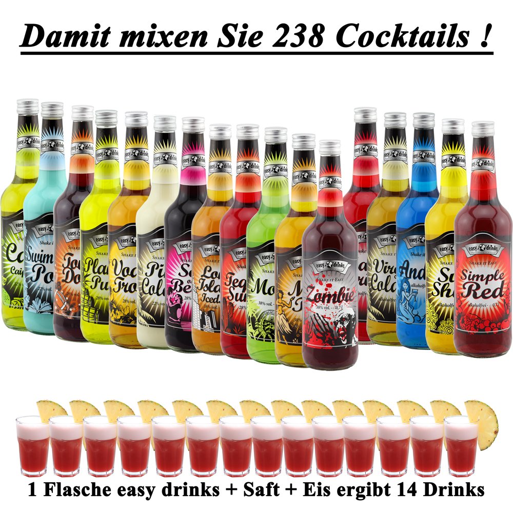Das easy drinks GASTRO Cocktail Starter Set mit 17 Sorten beinhaltet: