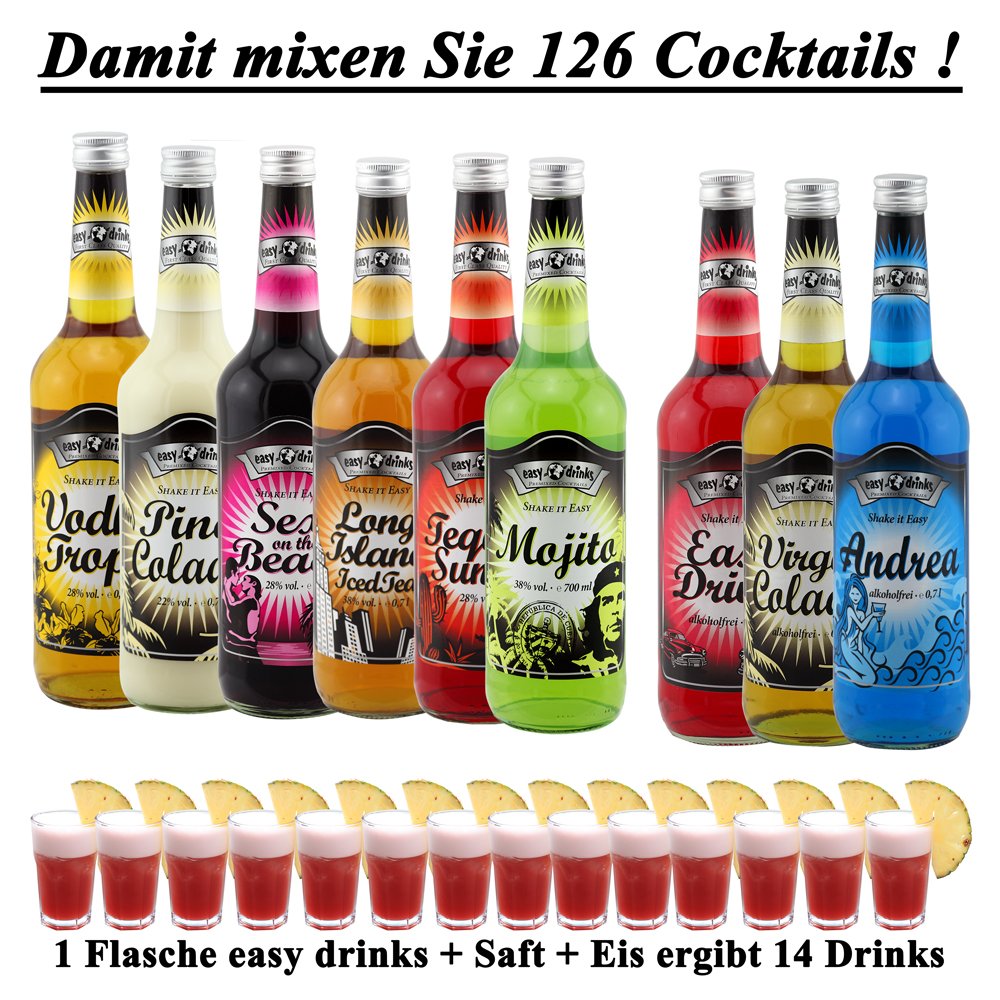 Das easy drinks GASTRO Cocktail Starter Set mit 9 Sorten beinhaltet: