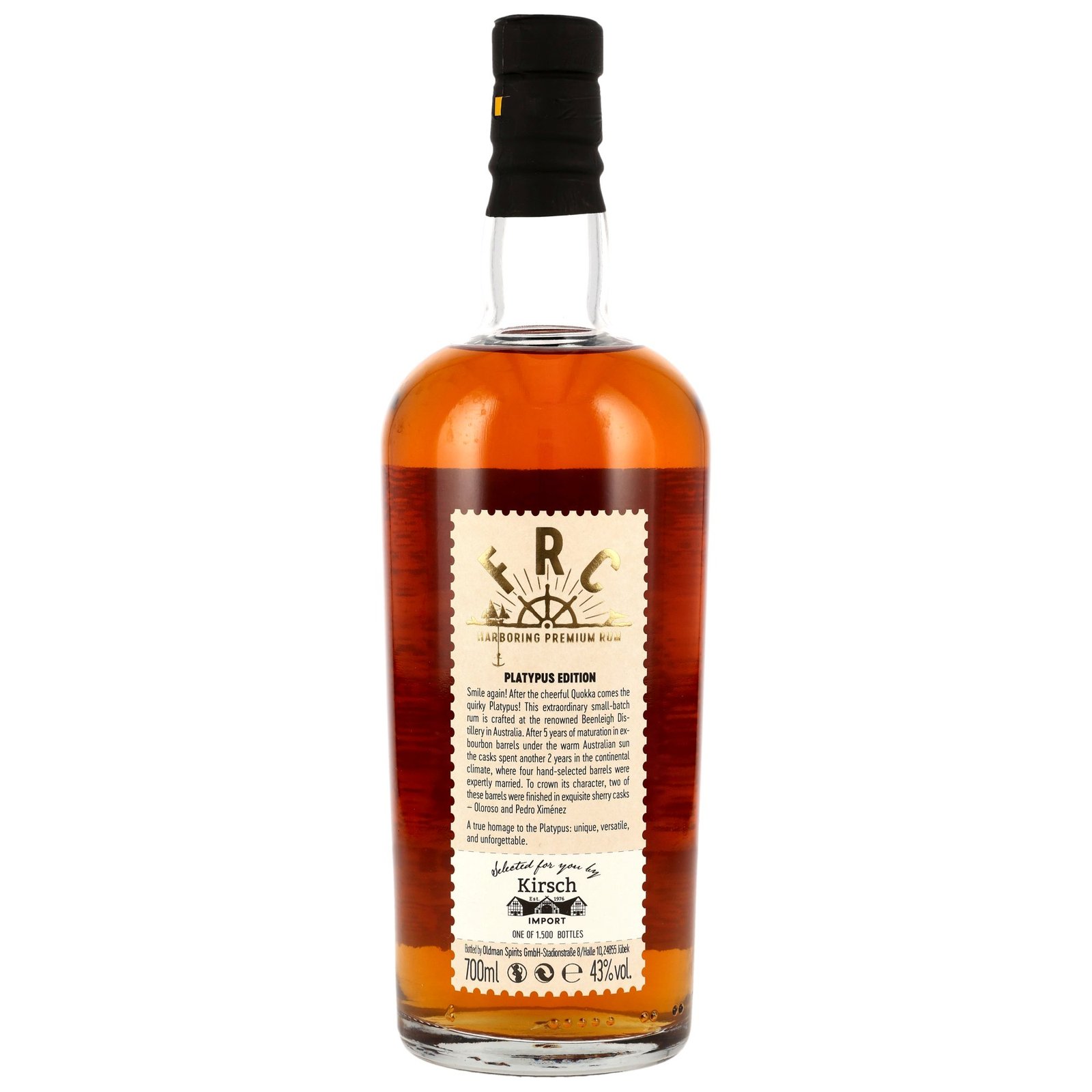 Für die Platypus Edition 7 y.o. arbeiteten die Norddeutschen erneut mit Australiens ältester registrierter Brennerei zusammen. Die Beenleigh Artisan Distillers brannten den Small-Batch-Rum aus Melasse in Column wie auch Pot Still und lagerten ihn fünf Jahre unter der australischen Sonne in Bourbon Casks. Zur komplexen Krönung wurde das limitierte Erlebnis für zwei Jahre auf dem europäischen Kontinent in Oloroso und Pedro Ximénez Sherry Casks veredelt.