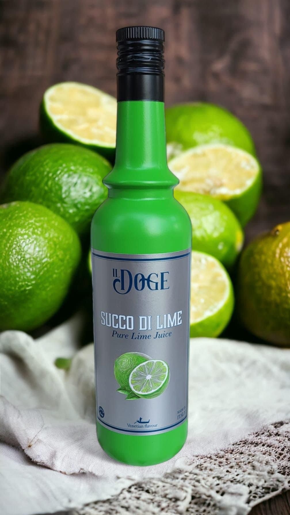 IL DOGE ist eine hocharomatische Sirup-Serie von höchster Qualität in der nun auch der 100% Limettensaft ( pure Lime ) zu finden ist. Er ist perfekt für die Zubereitung von kalten Getränken, Aperitifs, Cocktails, Mocktails und Longdrinks geeignet und stellt auch diejenigen zufrieden, die ihren Getränken die richtige Portion Limettensaft hinzufügen möchten.