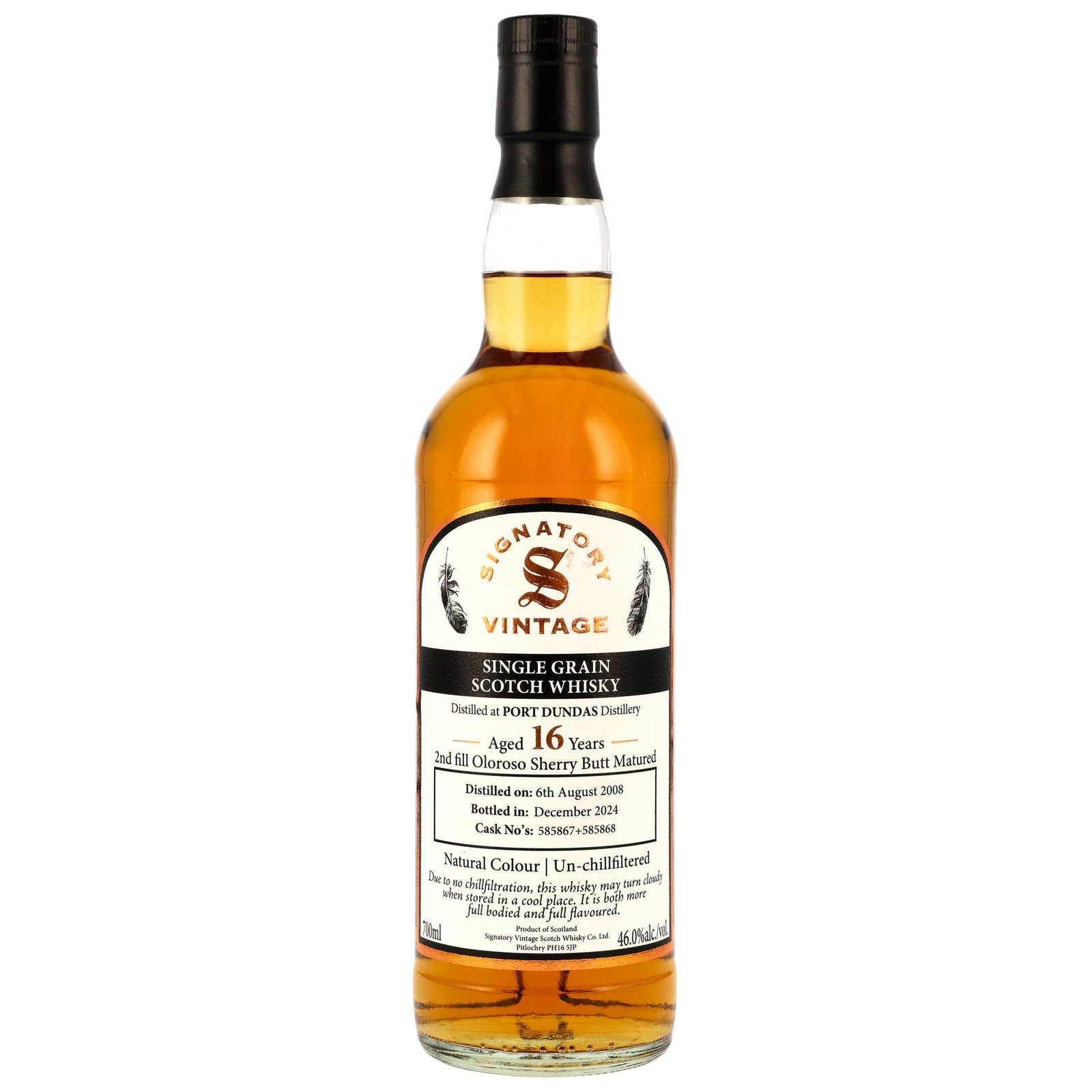 Der weiche Port Dundas 2008/2024 wurde wenige Jahre vor der endgültigen Schließung der Lowland-Brennerei destilliert und reifte in zwei Second Fill Oloroso Sherry Butts. Die beiden schon 2008 befüllten Second Fill Oloroso Sherry Butts wurden von Signatory individuell ausgewählt und nach 16 Jahren Lagerung weder gefärbt noch kühlgefiltert mit leicht erhöhter Trinkstärke abgefüllt.
